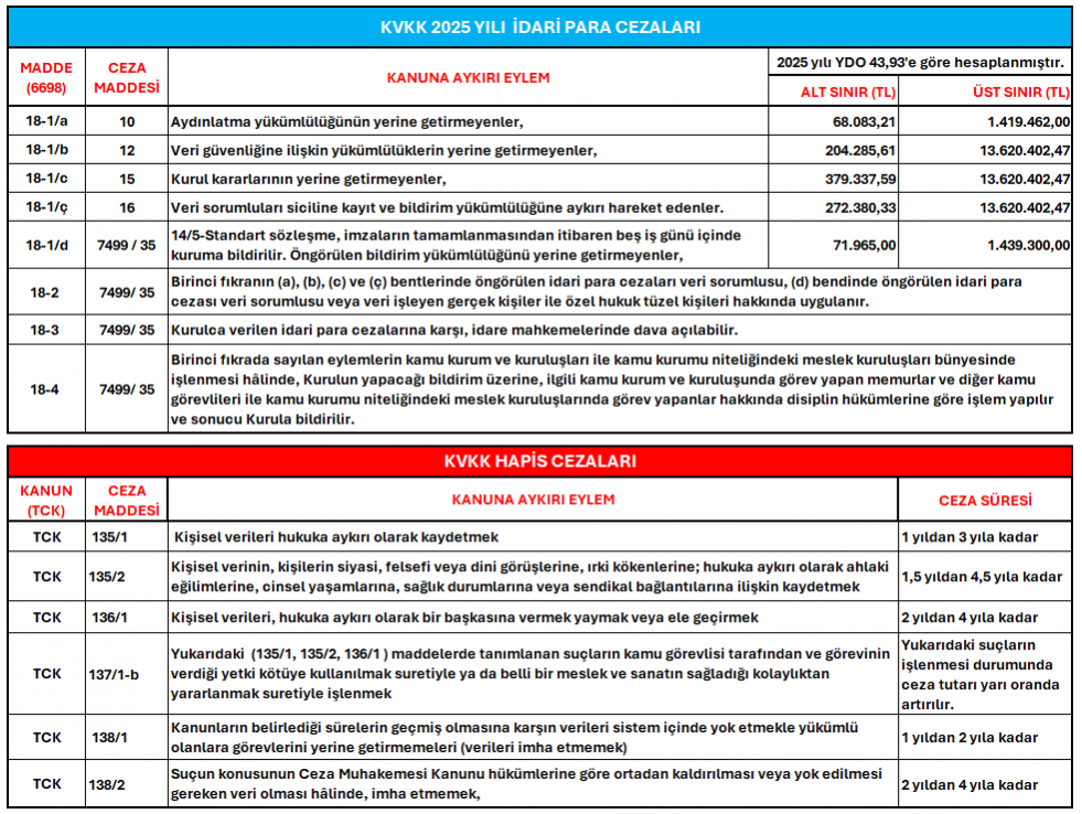 Ceza Tutarı (2025) : 272,380,33TL ile 13.620.402,47 TL arasında İdari para cezası verilmektedir.